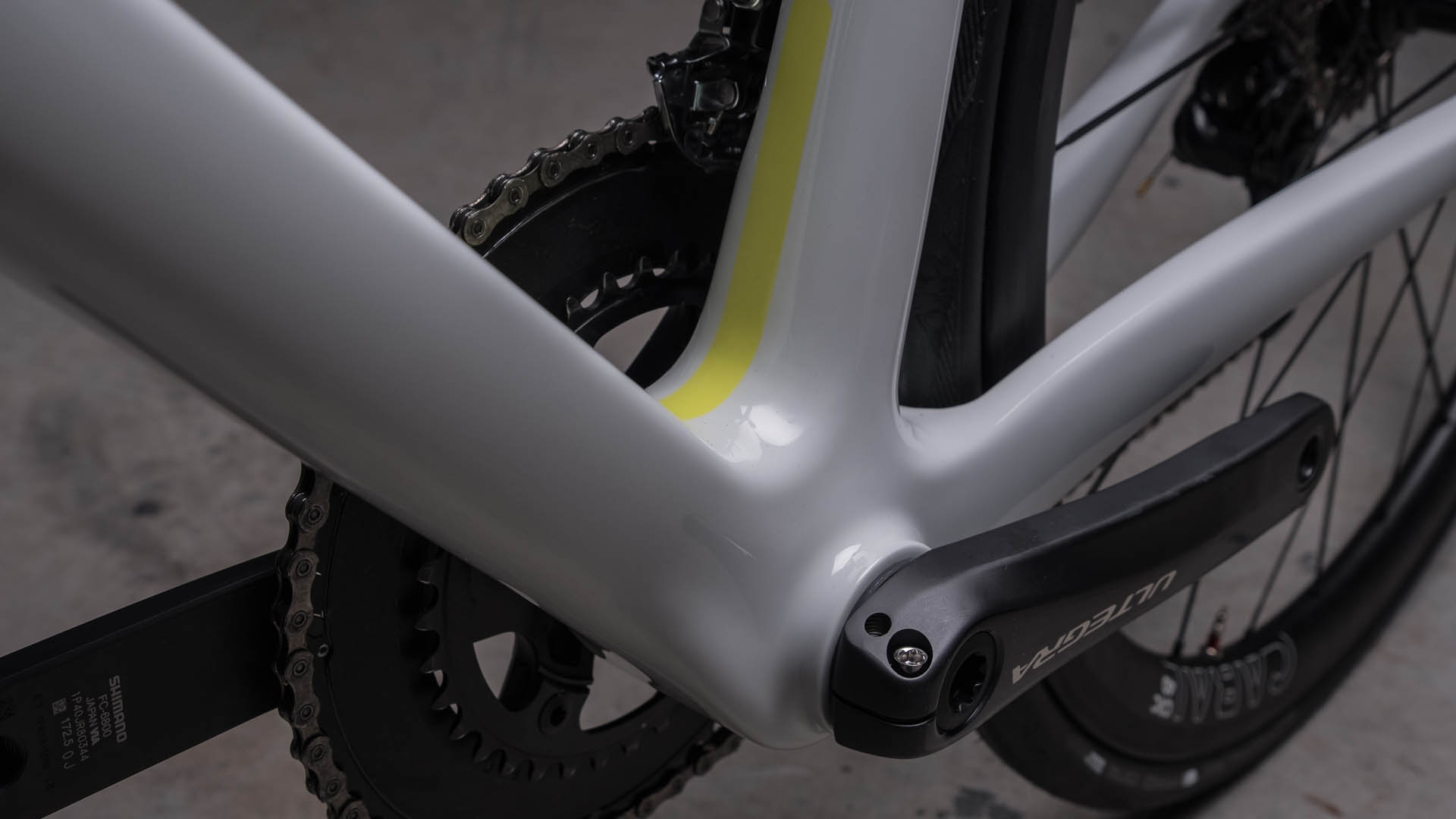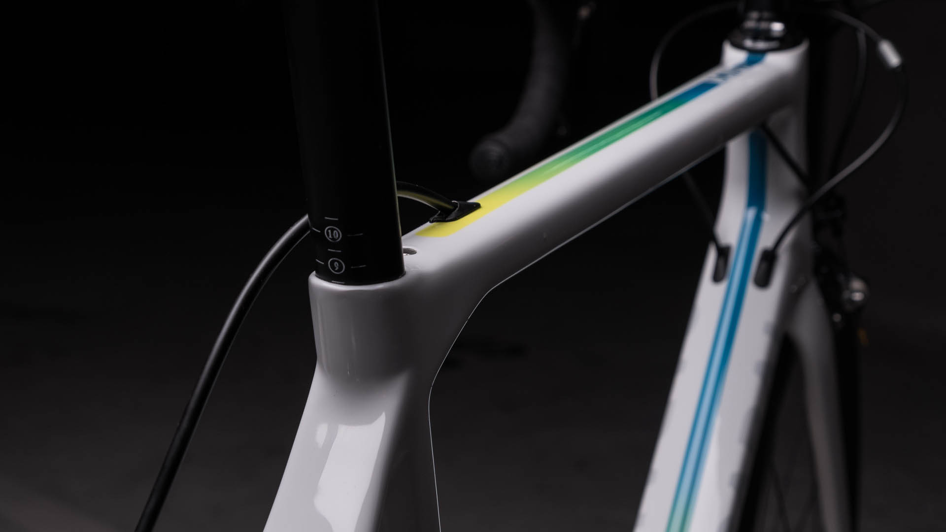 The integrated clamp not only cleans up the aesthetics of the frame design, but also results in marginal weight and aerodynamic gains.