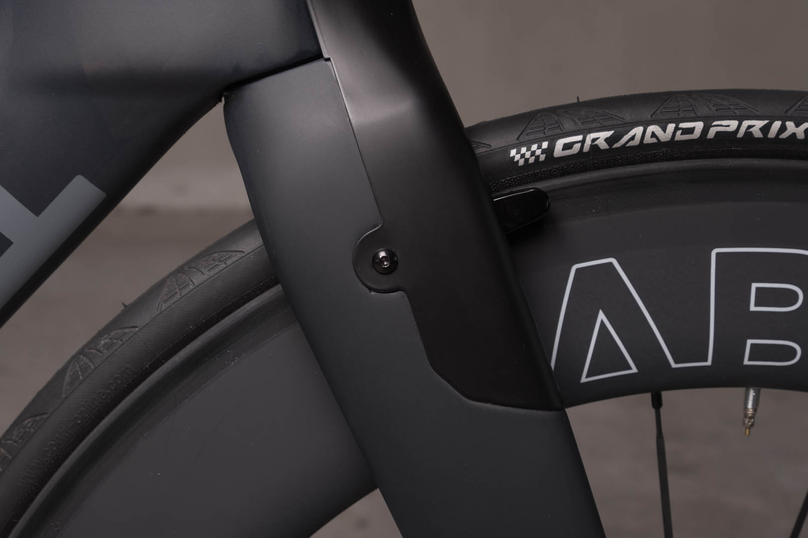The integrated clamp not only cleans up the aesthetics of the frame design, but also results in marginal weight and aerodynamic gains.